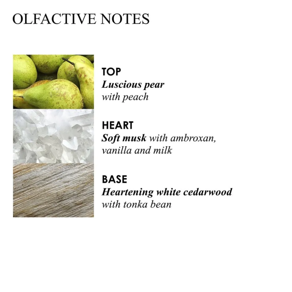 En nostalgisk drøm af duften af mælk, og et tæppe af cremet, beroligende noter, der åbner sig i denne plejende bodylotion. En blødgørende bodylotion i en afrundet, lækker flaske, med elegant print af guldtråde, der efterlader huden fugtet og behageligt duftende med et cashmere blødt touch.
