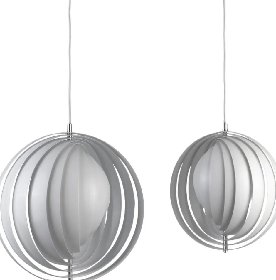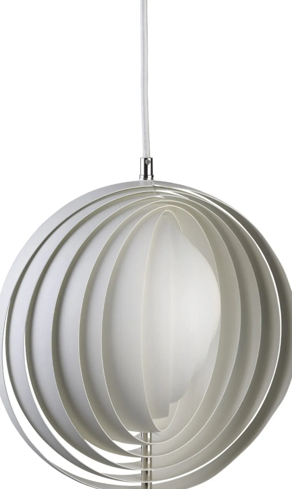 Kuglelampe med lodrette lameller arrangeret som en ventilator til individuel regulering af lyset. Loftsmarkise medfølger