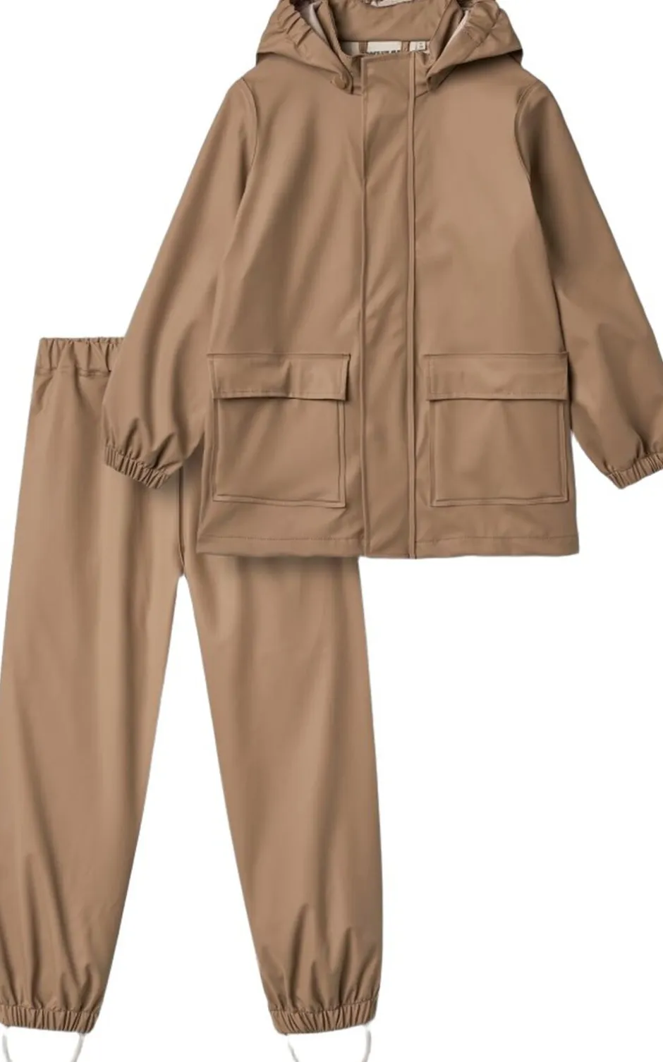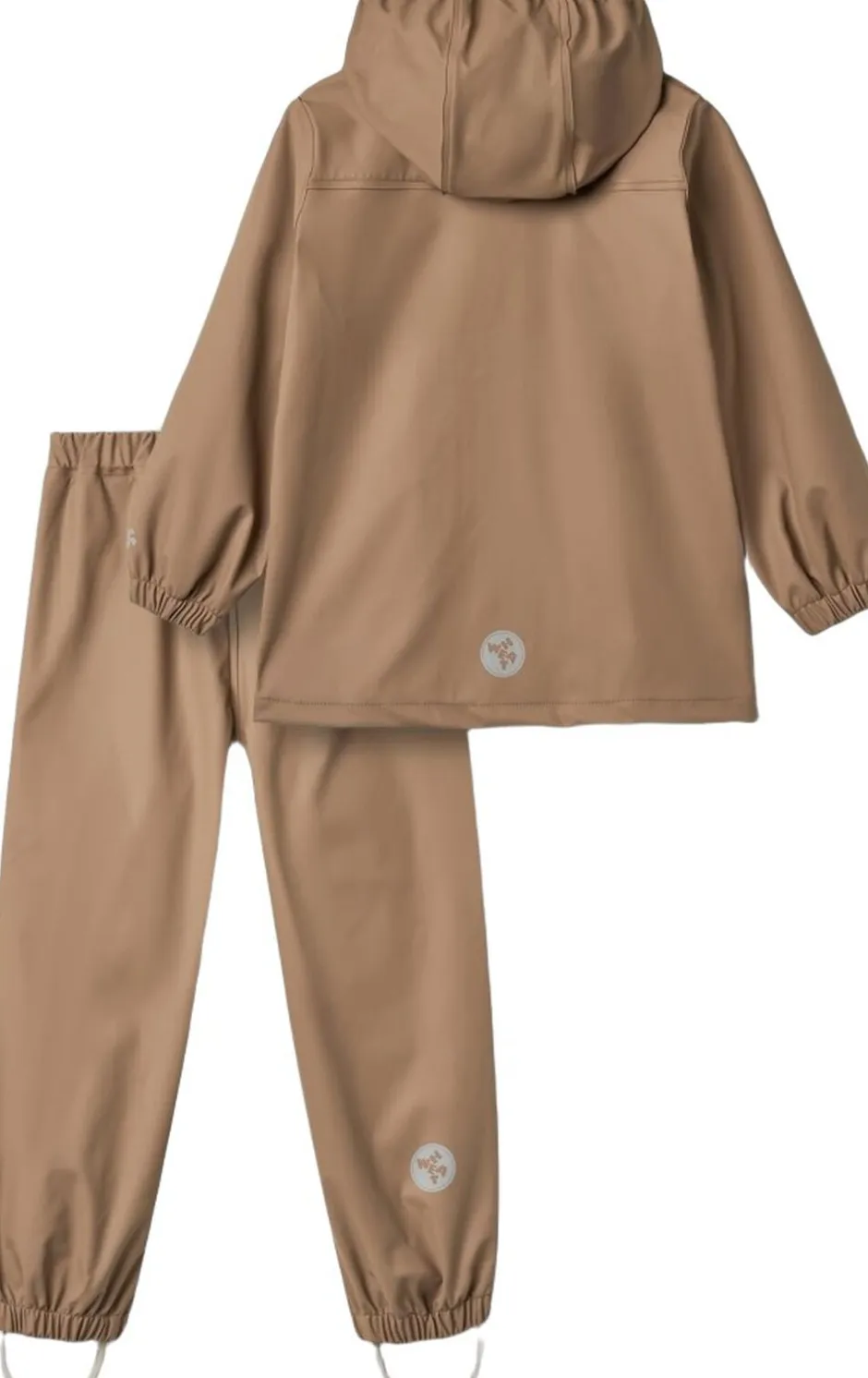 Praktisk regnsæt med matchende jakke og bukser til børn. – Normal pasform – Reflekser – Ensfarvet Jakke: – Aftagelig og justerbar hætte – Påsyede lommer med flaplukning og trykknap – Elastik ved manchetter Buks: – Elastik i taljen på bukserne – Elastik forneden i kanten rundt – Justerbare gummistropper under fødderne Wheats praktiske regntøjssæt med matchende jakke og bukser bør være en fast del af dit barns garderobe. Sættet er lavet i et superblødt og let materiale, der gør det behageligt for dit barn at have på og bevæge sig rundt i. Det er vandtæt og smudsafvisende, og er derfor nemt at rengøre med en våd klud efter en mudret eftermiddag på legepladsen. Regnjakken har aftagelig hætte, elastik ved ærmerne og vandtæt lynlås med hagebeskytter. Bukserne har elastik i benene samt justerbar elastisk i taljen. Kombiner regntøjet med Wheats termotøj indenunder på køligere dage. — – Vandsøjletryk: 8. 000 mm – Vandbaseret PU – Alle sømme er vandtætte og svejset – Vandtæt lynlås – PFC-fri – Fluorfri vand- og smudsafvisende finish (BIONIC FINISH ECO) – GRS-certificeret — – Standard 100 by OEKO-TEX® – 55% Post Consumer polyester, 45% Vandbaseret Polyurethan coating
