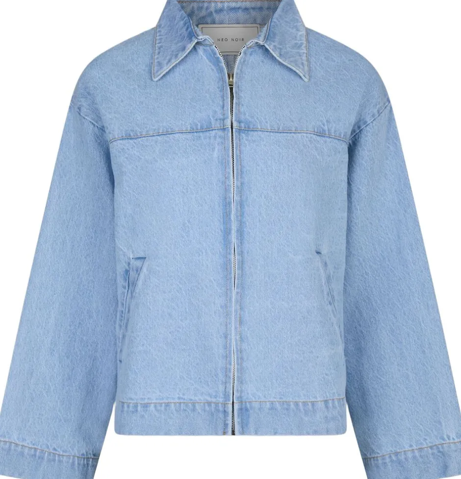 Oversize jakke i denim. Jakken har en rund halsudskæring med krave, lynlåslukning langs fronten samt lange ærmer med sænkede skuldersømme og brede ærmer. Den har lommer i siden og er lavet i bomuld. Modellen er iført størrelse 36.