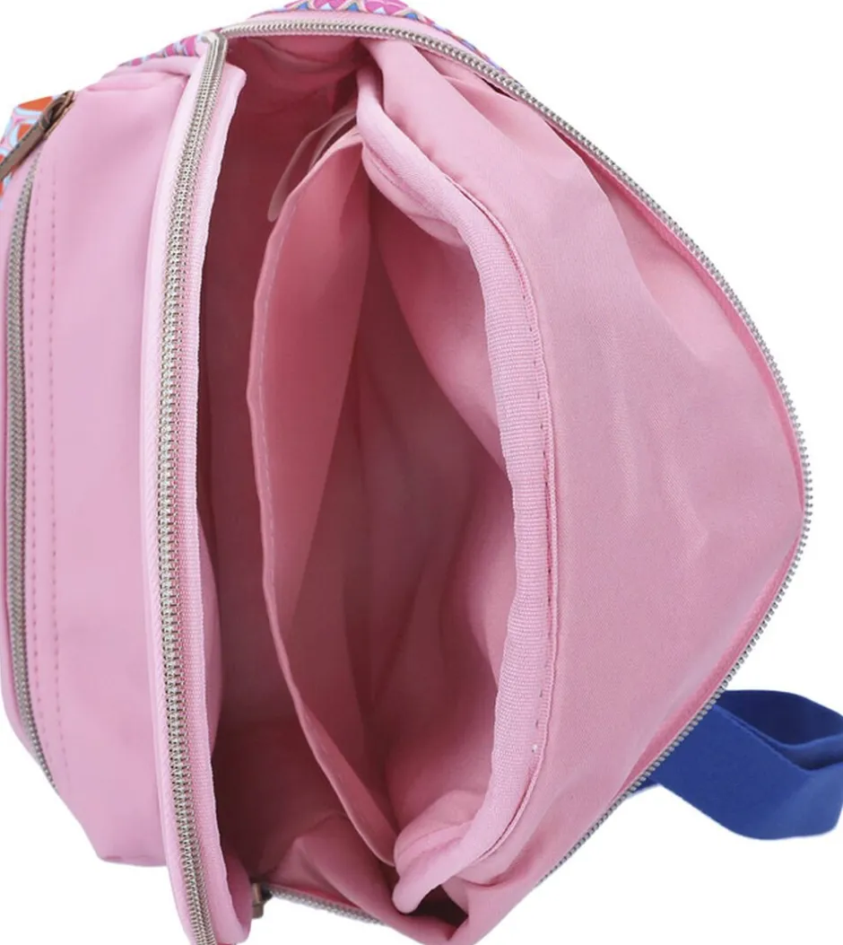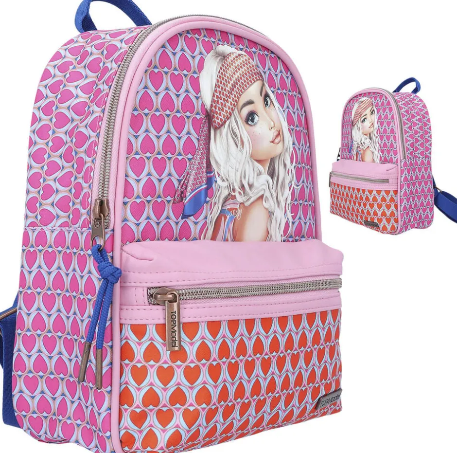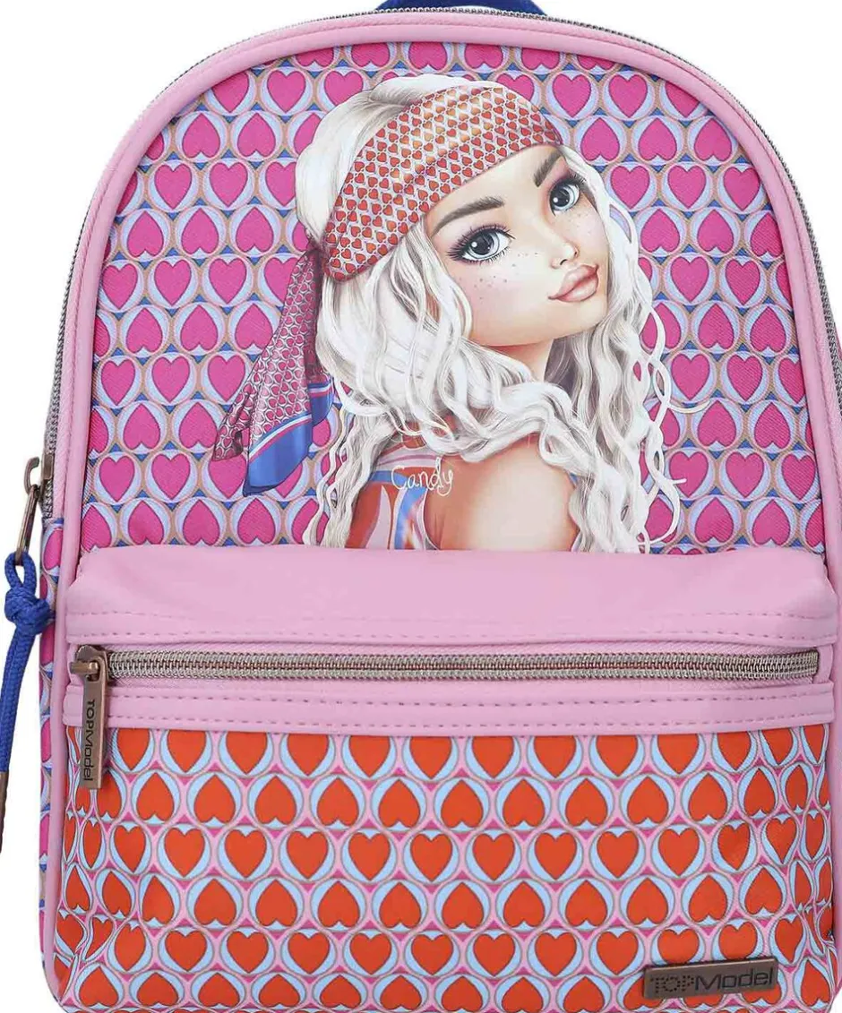 Lækker, lille rygsæk i pink og all over print med retro cool motiv fra TOPModel Seventies serien. Rygsækken har justerbare skulderremme, en bærestrop, et stort