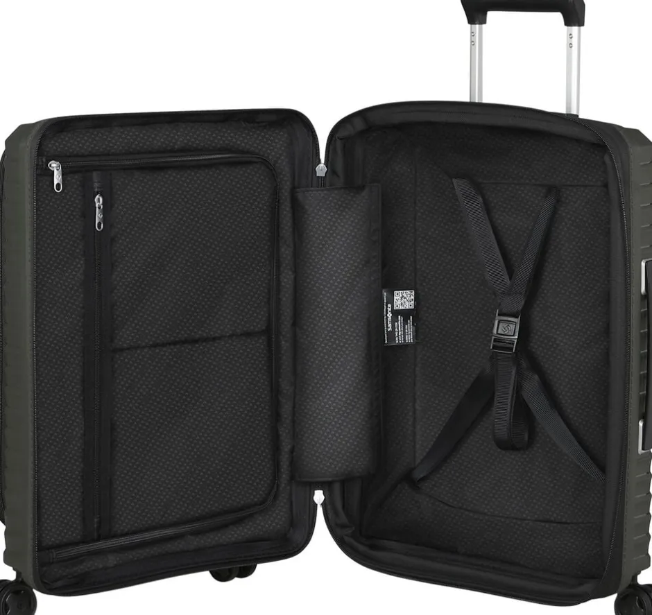 Kabinekuffert med mulighed for udvidelse, praktisk frontlomme med plads til 15,6″” pc og 10,5″” tablet, polypropylen,4 hjul,TSA lås , dobbelt trollystativ, navneskilt, vægt 2,6 kg,rumindhold 42/48 l, 5 års garanti,55x40x23/26 cm.