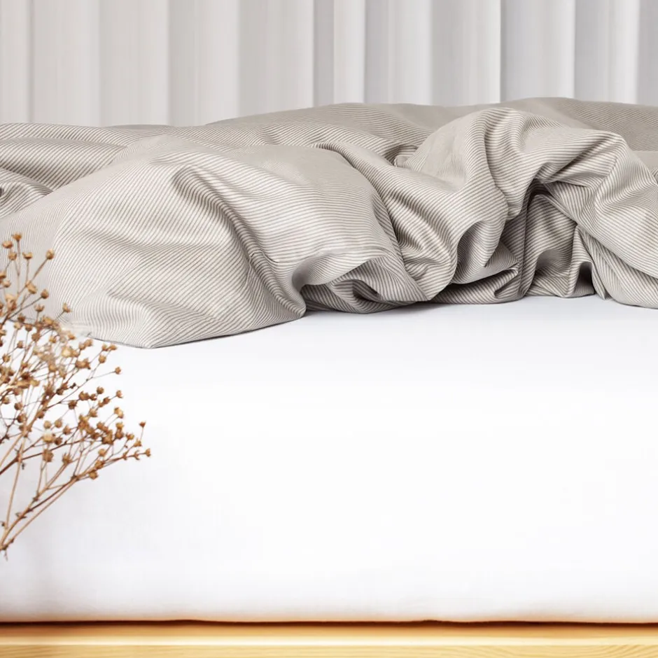 Et blødt og behageligt boxlagen i jersey fra Night & Day. Fremstillet af GOTS certificeret 100% økologisk bomuld – din garanti for en miljømæssig og socialt ansvarlig produktion. Et stræklagen i jersey er tætstrikket af tynde garner i 100% bomuld, hvilket giver et meget blødt lagen, med en særdeles