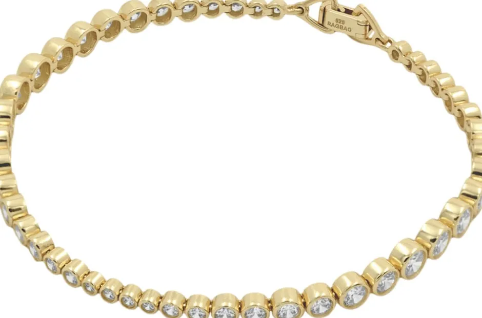 Et klassisk tennisarmbnd med et lille twist, unikt designet med skiftende størrelser af funklende brilliantslebne CZ sten, fattet i 925 sterlingsølv med en 18K guldbelægning.