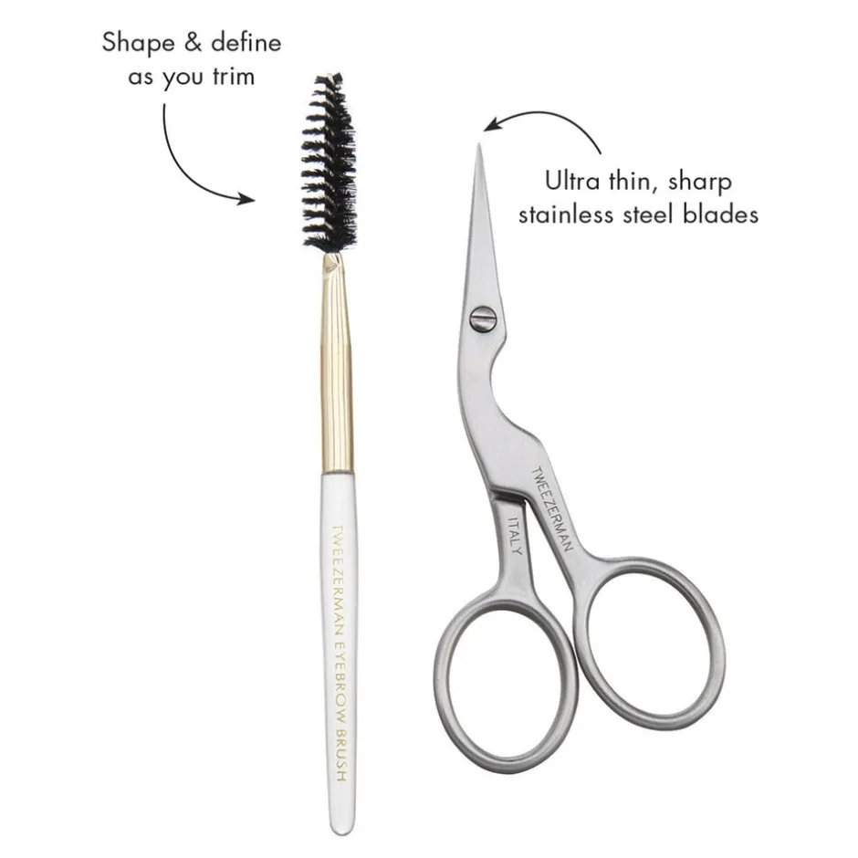 Specialfremstillet i et innovativt ergonomisk design med svungen form. De skarpe, tynde præcisionsblade griber fat om det enkelte hårstrå med stor nøjagtighed og under fuld kontrol. Spiralbørste til brynene medfølger. Rustfrit stål.
