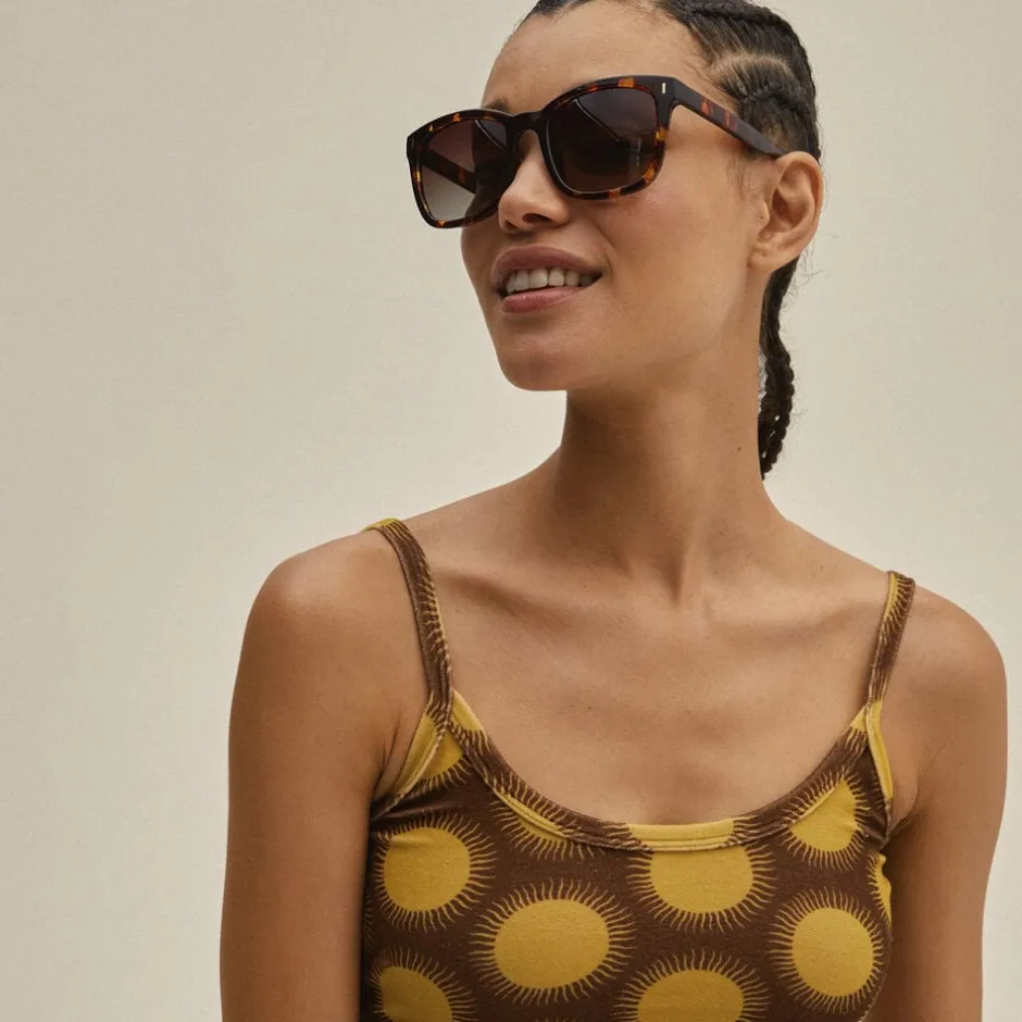 Enjoy the sunset med de klassiske, runde Janica sunnies fra Pilgrim. En high quality brille lavet af skildpaddefarvet recycled acetat med en lækker, chunky feel, der holder sæson efter sæson. Et true key item til alle sommerens occasions, lige fra drinks på din foretrukne fortovscafe til bålfest på stranden i solnedgangens skær. Dine Janica shades går til det hele. Leveres i bæredygtig opbevaringspose, der også kan benyttes som pudseklud. Alle Pilgrims solbriller har UVA/UVB-beskyttelse, er CE-godkendt og har UV400-beskyttede glas.