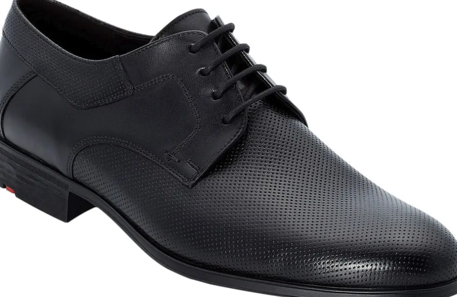 LLOYD “LEVIN” Derby-skoene, der er fremstillet af sort læder, imponerer med deres moderigtige stil. En elastisk gummisål og snørebånd er også standard