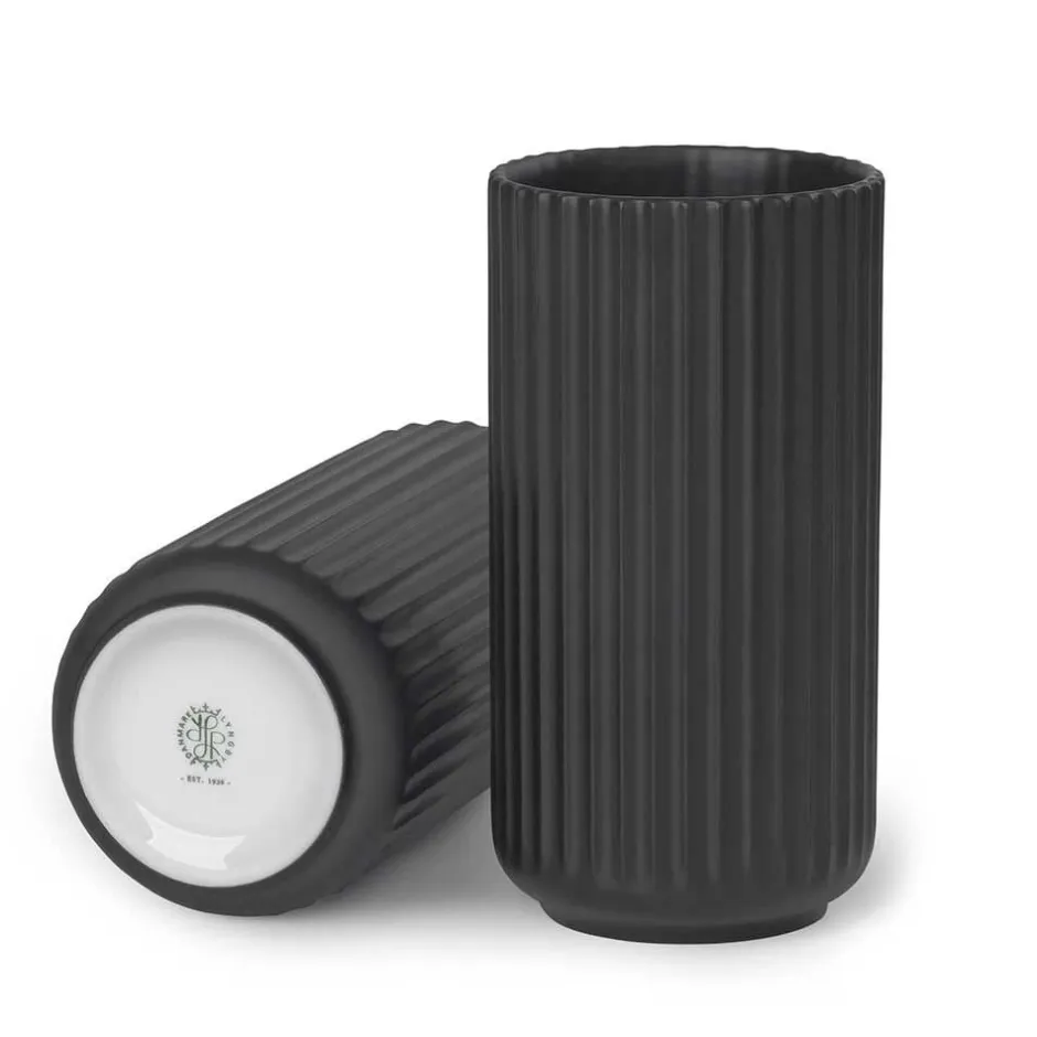 Da Lyngbyvasen oprindeligt blev designet den en stor kontrast til de klassiske og meget traditionstro porcelænsteknikker. De aflange, rillede former og den elegante enkelhed var noget helt nyt. Lyngby Porcelæn relancerede Lyngbyvasen i 2012, og siden da har vasefamilien udviklet sig på både farver og materialer. Husk altid at kigge i bunden af en Lyngbyvase, før du køber den. De originale vaser fra Porcelænsfabrikken Danmark – Lyngby Porcelæn har det velkendte, håndtrykte monogram fra 1961 ”Danmark-Lyngby” i bunden.