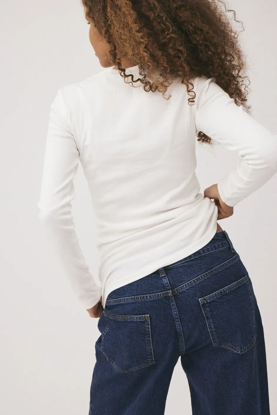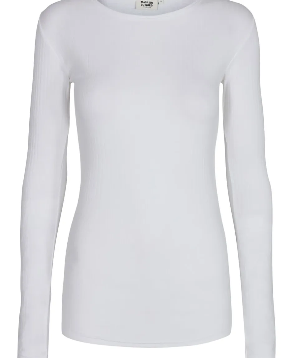 Bluse fra Magasin du Nord Collection i den blødeste kvalitet af 100% økologisk bomuld med GOTS-certificering. Blusen er enkel i modellen med lange ærmer, en smal ribkant langs den runde halsudskæring samt en lækker ribstruktur, der giver blusen en tætsiddende pasform. En skøn bluse i den lækreste kvalitet.
