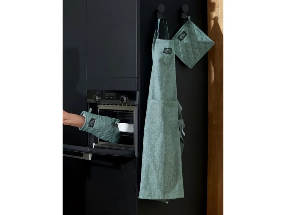 Ovnhandsken er fremstillet af genanvendte stofrester, der ellers ville være blevet kasseret. Stofresterne sorteres efter farve, trevles til tekstilfibre og bliver derefter spundet og vævet igen. Derfor kan der være nuanceforskelle fra parti til parti. Køkkentekstiler i gode design i både klassiske og moderigtige farver. Tekstilerne vaskes ved 40 grader. Overskudsfarve kan forekomme, især ved mørke farver, derfor anbefales separat vask. Brug vaskemiddel uden optisk hvidt og blegemiddel. Krympning 5-10 %. Tekstilet kan trækkes glat eller stryges.