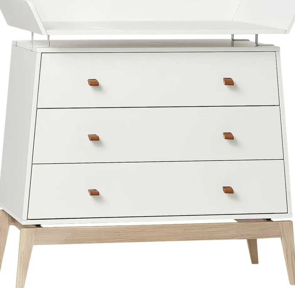 Pusleenheden indbyder til hyggestunder med dit barn. Den er designet med høje kanter, der giver tryghed, når dit barn skal pusles. Samtidig giver den store pusleflade og de tre rummelige skuffer på Leander Luna kommoden god plads til f.eks. Leander Matty puslepuden samt opbevaring af bleer, vand, vaskeklude og tøj.