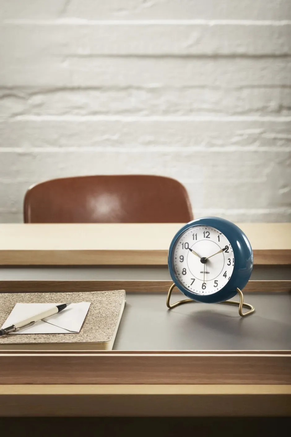 Arne Jacobsens Station bordur i petroleum er perfekt som et detaljepræget vækkeur i det rolige soveværelse, som et farverigt indspark på badeværelset eller som en stilfuld detalje i reolen i stuen. Uret er med sit klassiske udtryk en oplagt gaveidé til alle designelskende. Arne Jacobsen skabte Station borduret i 1939 i forbindelse med en opgave til el-vareproducenten LK. Borduret er sidenhen – med de originale tegninger for øje – blevet opdateret, så det lever op til de moderne vækkeures standarder. Uret har således både lys og snooze-funktion, som begge kontrolleres uden berøring ved hjælp af en usynlig sensor øverst på uret.