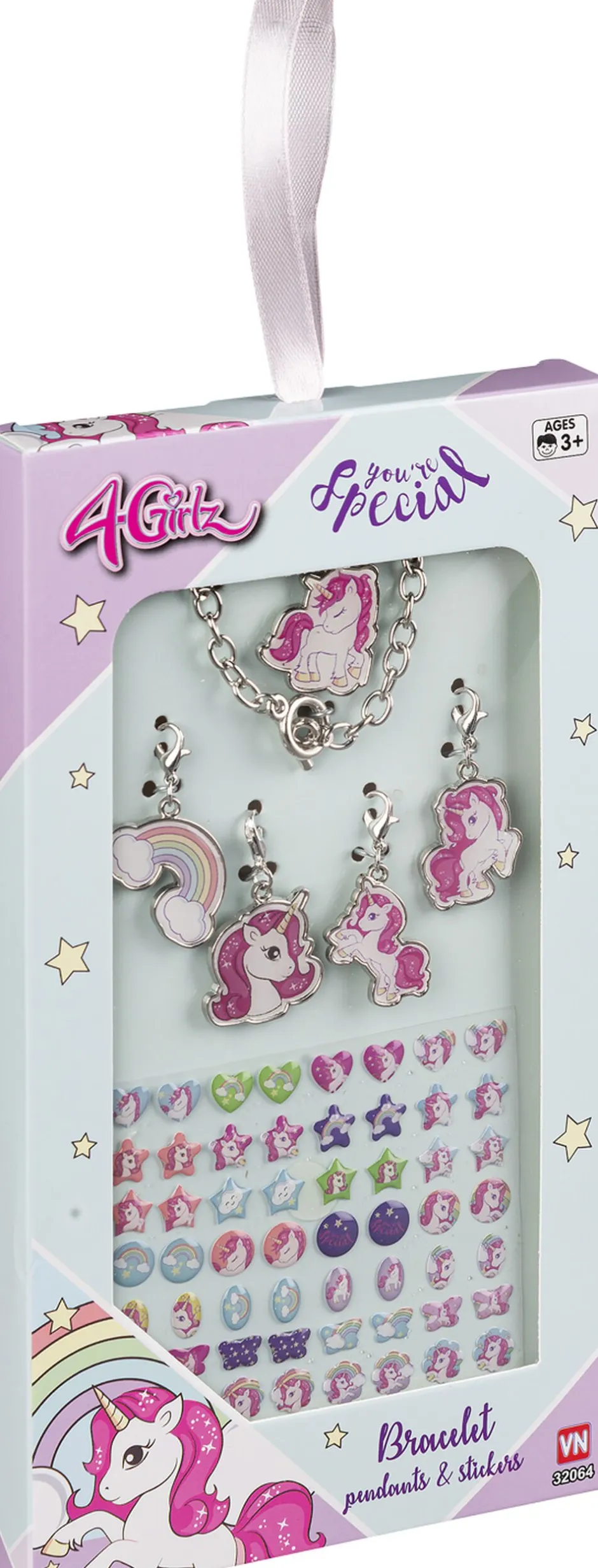 4-GIRLZ ARMBÅND-STICKERSm5 VEDHÆNG I W/B