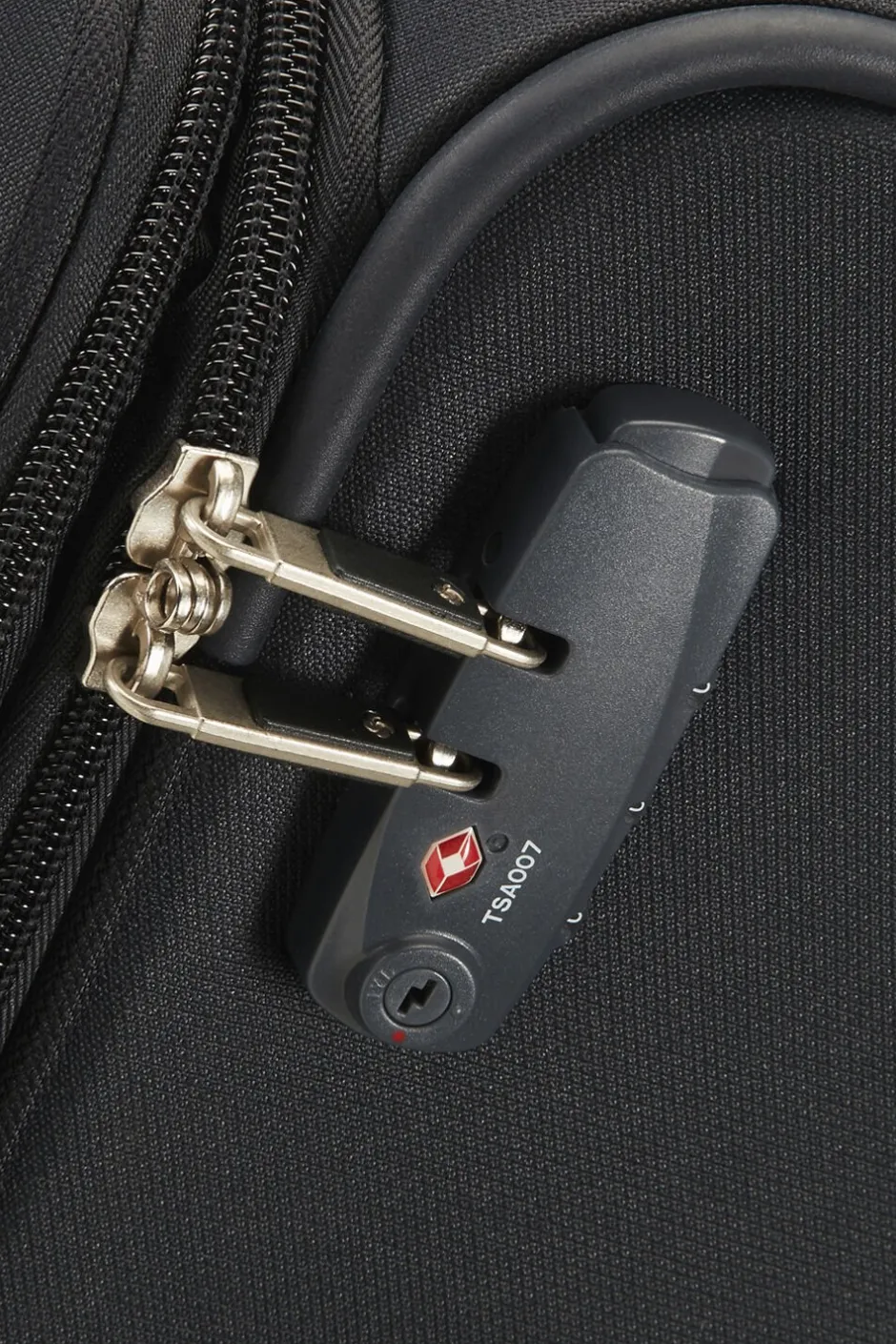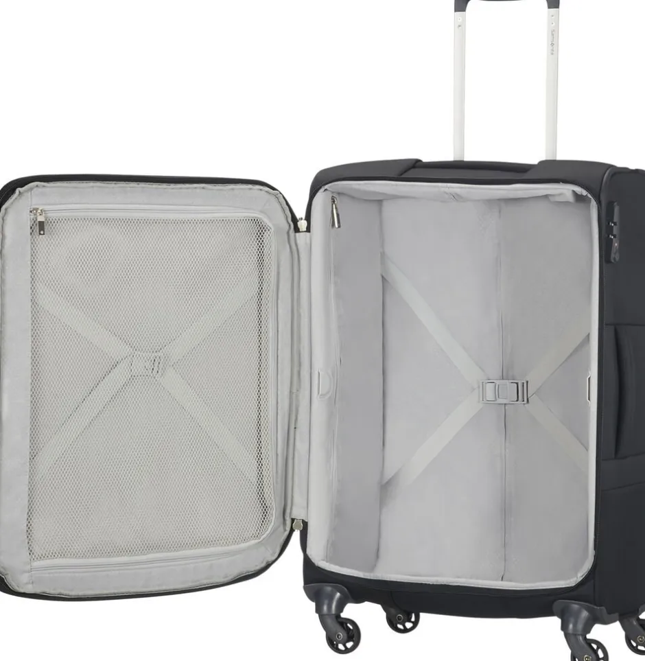 Super let kuffert kun 2,7 kg. Den har mulighed for udvidelse, frontlomme samt indvendigt lynlåslukning i låget og krydsbånd i top og bund. TSA lås , navneskilt, 4 hjul, dobbelt trollystativ,rumindhold 67,5/73,5 l, 5 års garanti
