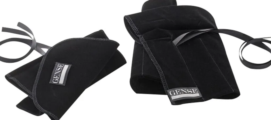 Bestikpose til 12 dele udført i sort kvalitetsklæde med hvidt Gense-logo og sort stofbånd til lukning.