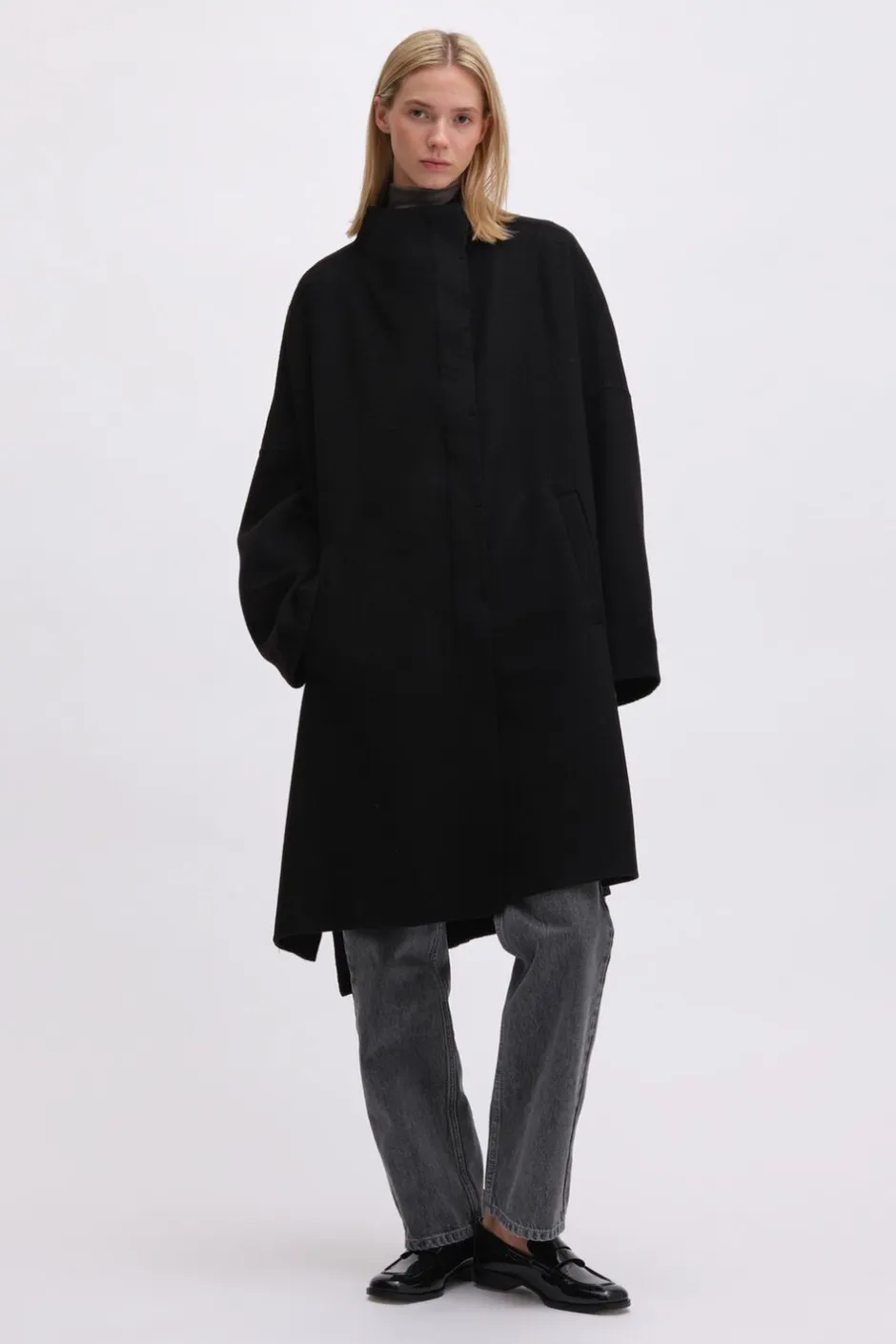 Giv din garderobe et løft med Drapy Wool Coat fra Remain, og oplev hvordan denne frakke kan forvandle dit look til noget helt særligt.