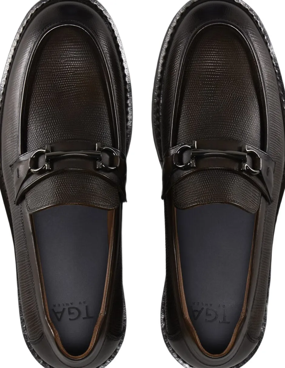 Loafer med spænde i præget kalveskindslæder. Læderforing og fuldt polstret kalveskindssål. Ydersål i letvægtsgummi