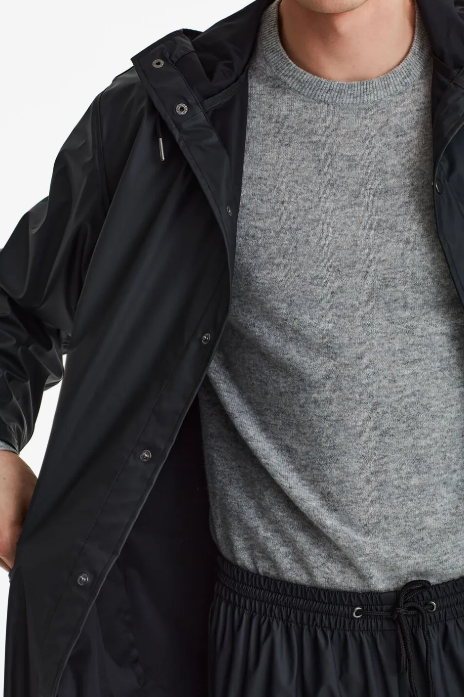 Jakken er klassisk og enkel i modellen med knapåbning samt justerbar hætte.