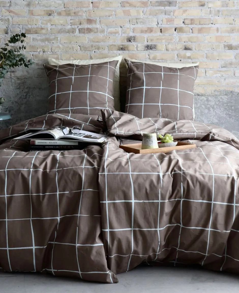 OMHU X MADS BARFOD SENGELINNED, WAVE GRID Sengesættet er fremstillet i 100% økologisk bomuldspercale TC 200 med print. Percale er en klassisk tæt lærredsvævning og vil give oplevelse af knitrende touch, som at sove på et lækket hotel. Samarbejdet mellem omhu og Mads Barfod har haft en fælles vision om at skabe noget, der både repræsenterer Mads´ kreative stil og passer perfekt ind i omhu´s værdier og univers. Kompromisløs tilgang til kvalitet i økologisk bomuld samt ansvarlig produktion. Det har været vigtigt at skabe noget, der føles tidløst, men også har et kunstnerisk udtryk. Flere dele af Mads Barfod´s kollektion er gennemsyret af inspiration hentet fra tyrkiske bade med fliser og vand. Oplev på dette sengesæt et ternet look, skabt med referencer til fliser og mosaikker der ses igennem vandoverfladen. Alt sammen i det bedste håndværk, og i GOTS FairtradeSvanemærket-Oeko-tex og SA8000 certificeret økologisk bomuld, hvilket er din forsikring om, at det er tekstil af højeste kvalitet og med omtanke for miljøet! Både pude- og dynebetræk har skjult YKK lynlåslukning.