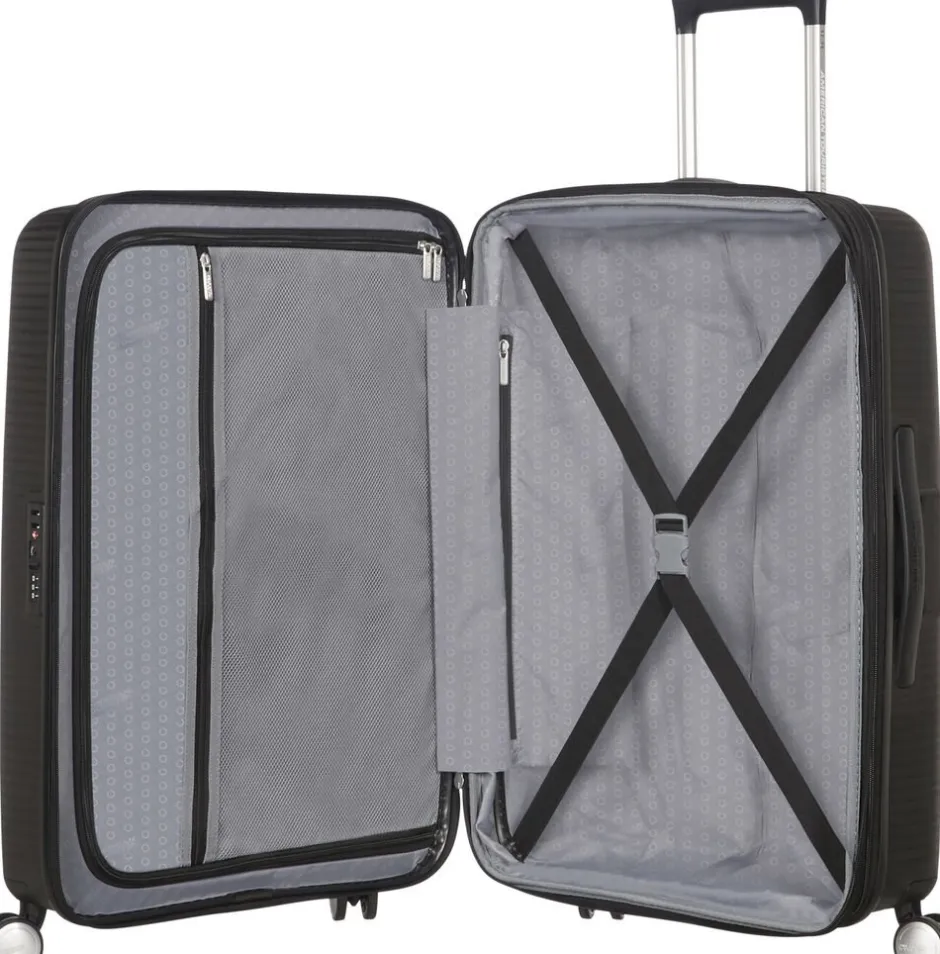Kuffert lavet af slidstærk polypropylen, mulighed for udvidelse, indvendig stofforing med krydsbånd og lynlås lomme, Dobbelte hjul, TSA lås, rumindhold 71,5/81 L, vægt 3,7 kg. 3 års garanti.