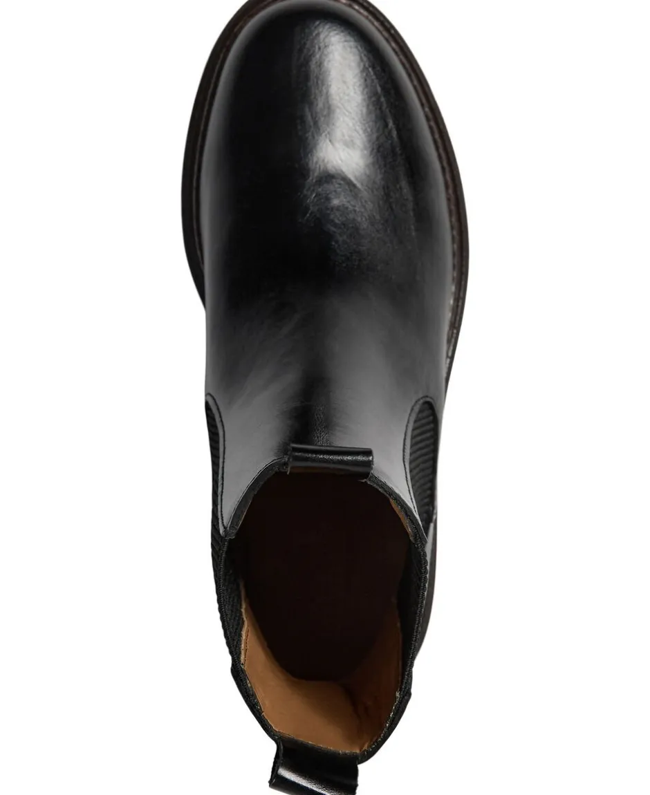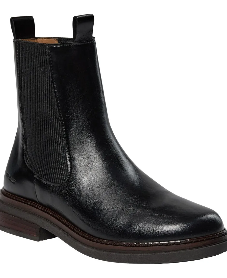 Støvlen har en rundet snude, polstret indersål, kromfrit læderfor, præget logo ved hælparti, tætsiddende ankelhøjt skaft med funktionel ribelastik og hælstropper samt en let og fleksibel gummisål med dekorativ stikningsrand.