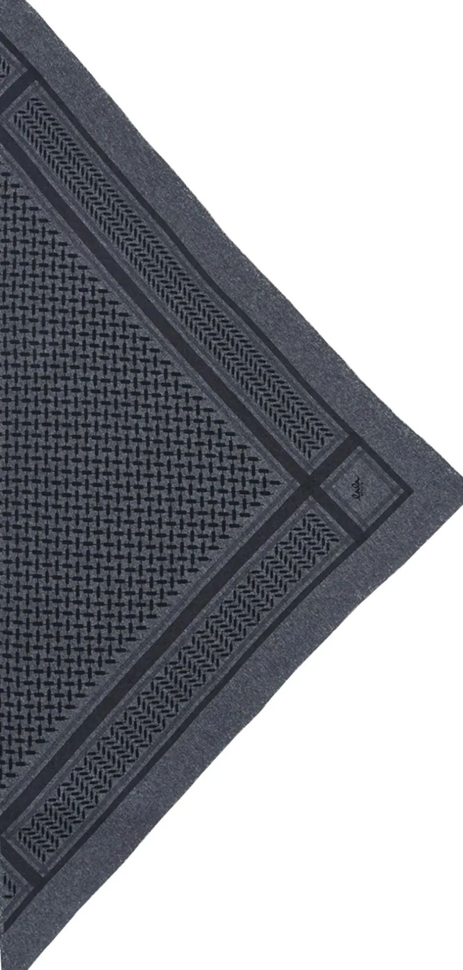 Et luksuriøst blødt, trekantformet cashmere tørklæde, med et klassisk sort Kufiya-print.