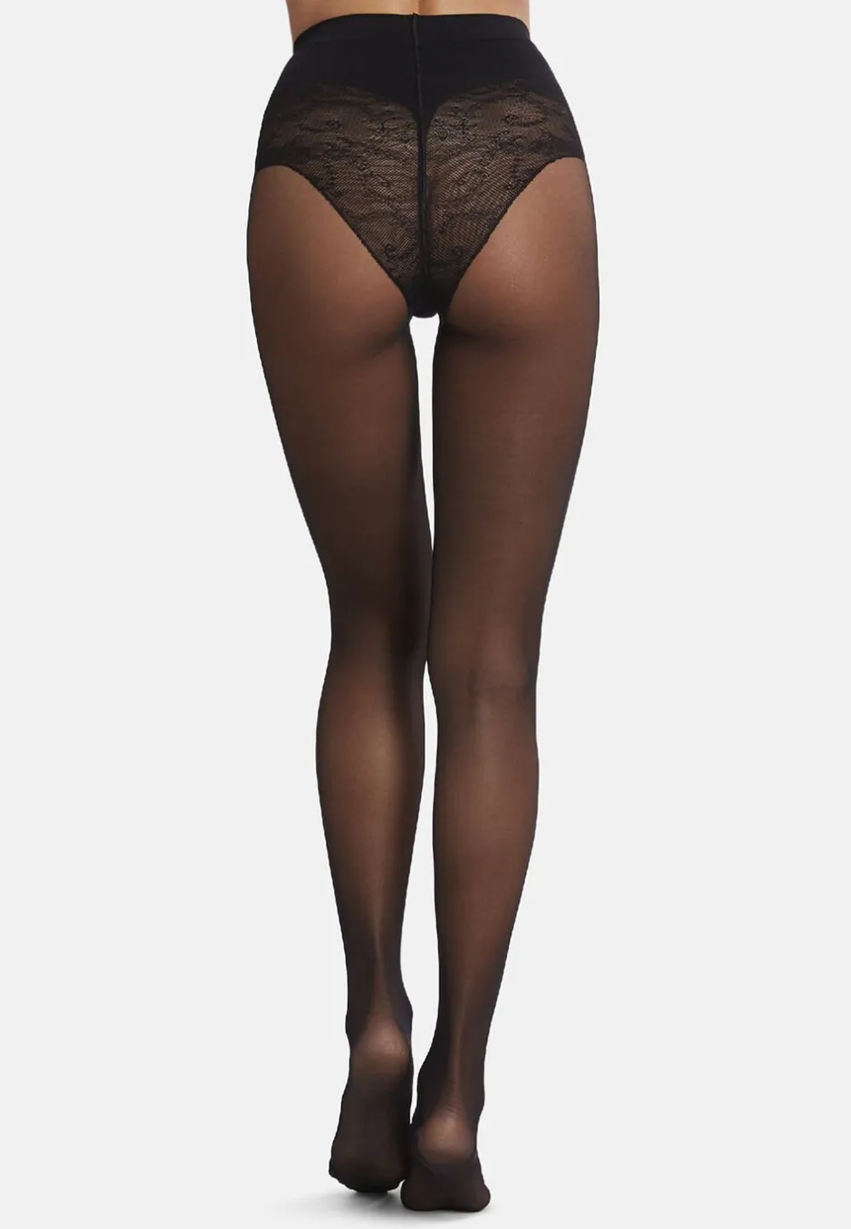 Støttestrømpebuks med mat, fløjlsblød optik. Med let kompression i benene og formende trusse til maveområdet.