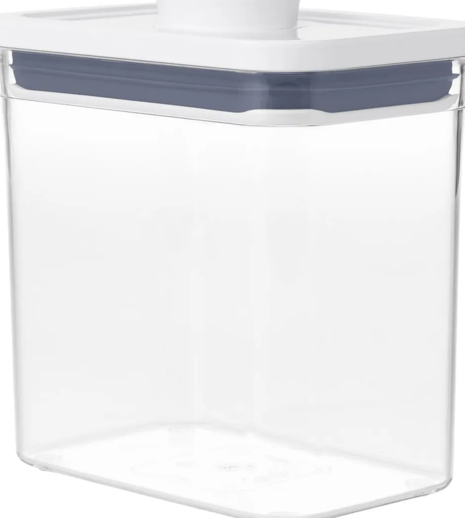 POP Containers fra OXO er lufttætte opbevaringsbokse til sukker, mel, pasta, ris og andre tørre madvarer. De har et lækkert design, fås i mange størrelser og kan stables, så de udnytter pladsen og passer i alle køkkenskabe. Låget har en unik trykfunktion som sørger for at det lukker tæt, samtidig som det fungerer som et håndtag, når det åbnes. Den lufttætte forsegling holder maden frisk længere, og boksenes rundede hjørner gør det nemt at hælde ingredienserne ud af dem. På lågets underside kan man fæstne diverse accessories, som købes separat. Låget kan demonteres for grundig rengøring, og både selve POP Containeren og låget tåler opvaskemaskine. POP Containers kan også bruges i garagen, hobbyrummet, børneværelset, mv.