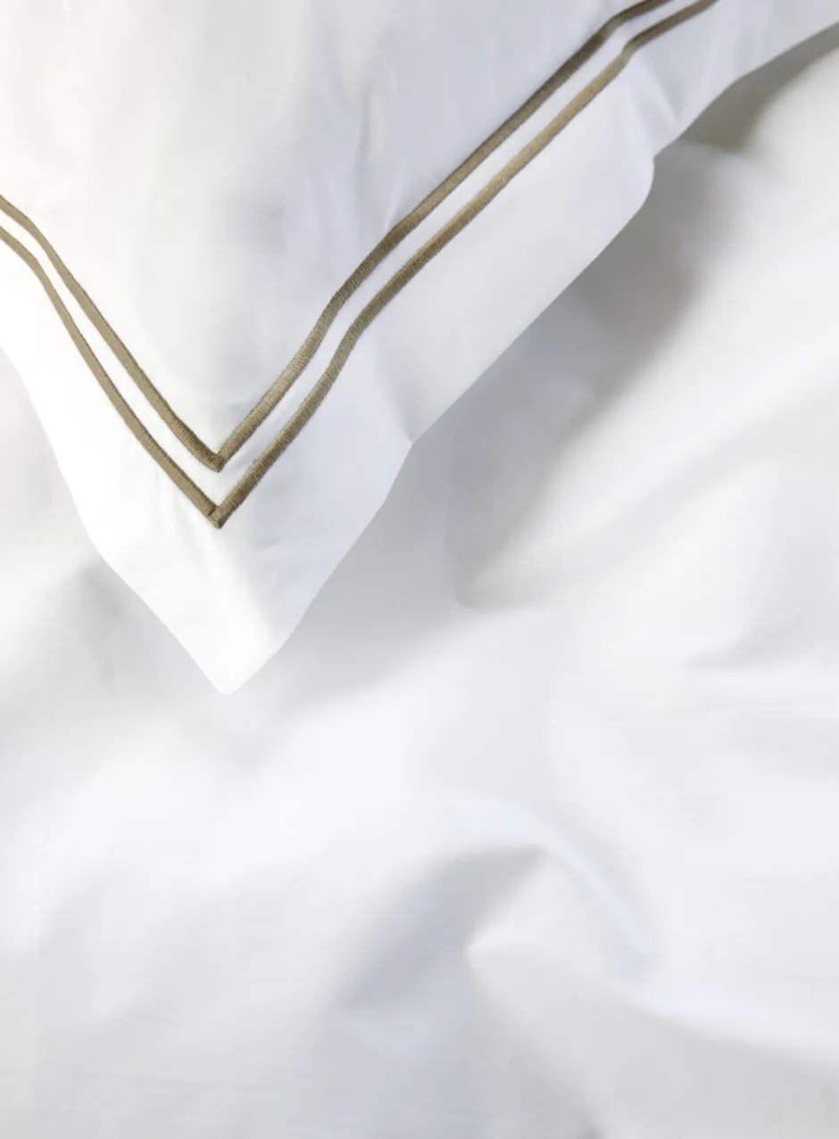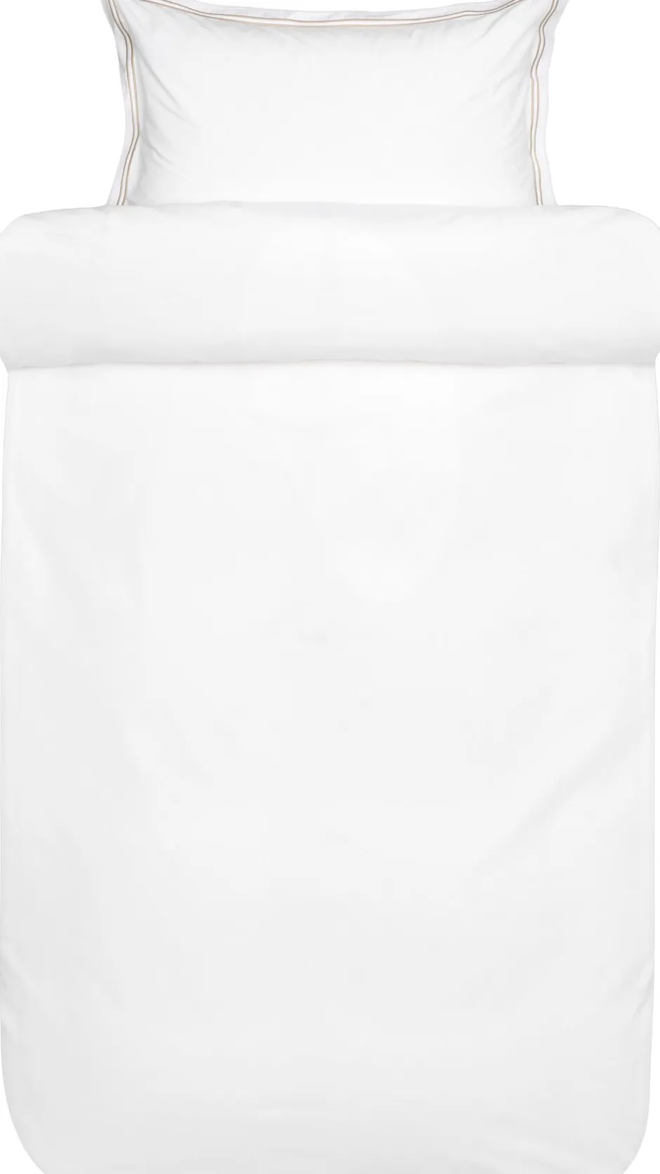 Høie Paris, en Nyhed i premium percale af 60% bomuld og 40% bambusviskose. Kvaliteten kendetegnes af en tættere vævning og den mærkbare kraftige kvalitet. Paris er ensfarvet hvid og har et elegant dessin med en dobbelt beige broderikant på spejlkanten af pudebetrækket. Bonusinfo: Bambus er den plante, som vokser hurtigst i verden, den er naturligt genanvendelig og behøver kun regnvand for at vokse. Bambusfibre er en fantastisk råvare, som omdannes til bambusviskose, og i kombination med bomuld, giver dette et sengetøj, som holder godt og længe. Paris er det perfekte valg til dig, som elsker den knitrende følelse, når du breder dynen over dig. Sættet kommer i stofpose. Oeko-Tex Made in Green certificeret.