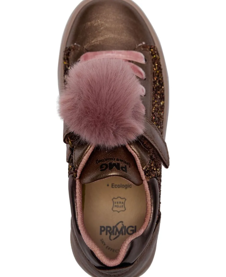 Sneakers fra Primigi, der består af en kombination af flere forskellige kvaliteter, der tilsammen giver en flot effekt. Derudover har skoen elastiksnøre og velcrolukning på fronten, logodetaljer, en præget sål samt den fineste aftagelige pompon på fronten.