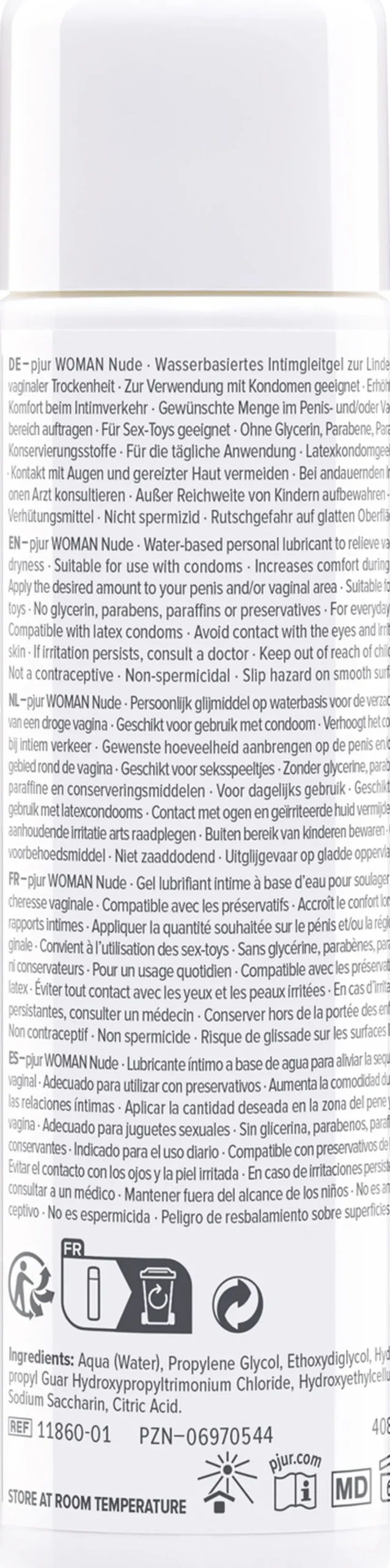 Our water-based personal lubricant without any additives! In the cosmetics and fashion industries, nude is a by-word for natural, genuine products. So it’s no surprise that pjur WOMAN Nude does not contain glycerin, parabens, oil, fat, perfume or preservatives.