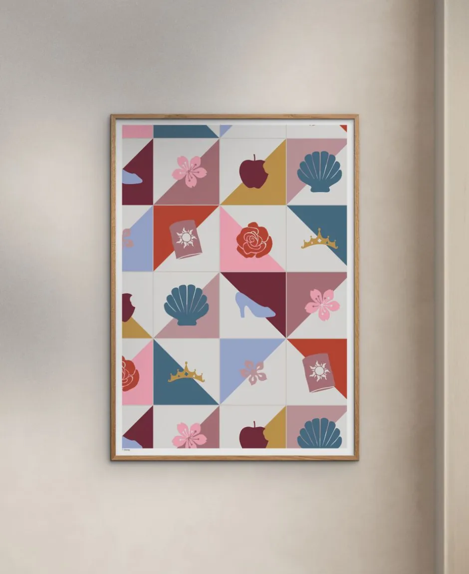 En skattekiste af kongelig magi. Denne Disney Princesses-inspirerede plakat samler det ikoniske tilbehør fra Disney Princesses i en sjov, collage-inspireret komposition.En skattekiste af kongelig magi. Denne Disney Princesses-inspirerede plakat samler det ikoniske tilbehør fra Disney Princesses i en sjov, collage-inspireret komposition.