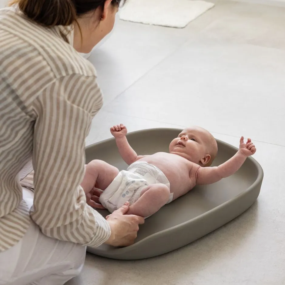 Den babynest-lignende form med høj kant vil hjælpe til med at forhindre, at dit barn triller ned fra puden. Den bløde kant sikrer samtidig, at det aktive barn, som er i bevægelse under bleskiftet, ikke slår hovedet imod en hård bagvæg eller puslebordets kant.