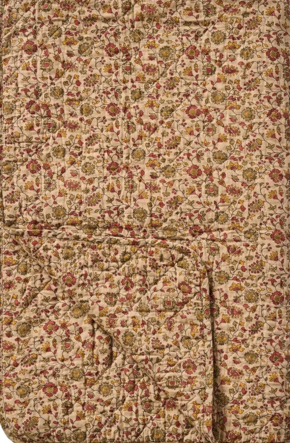Quilt brun m/røde, orange og grå blomsterranker Plaider
