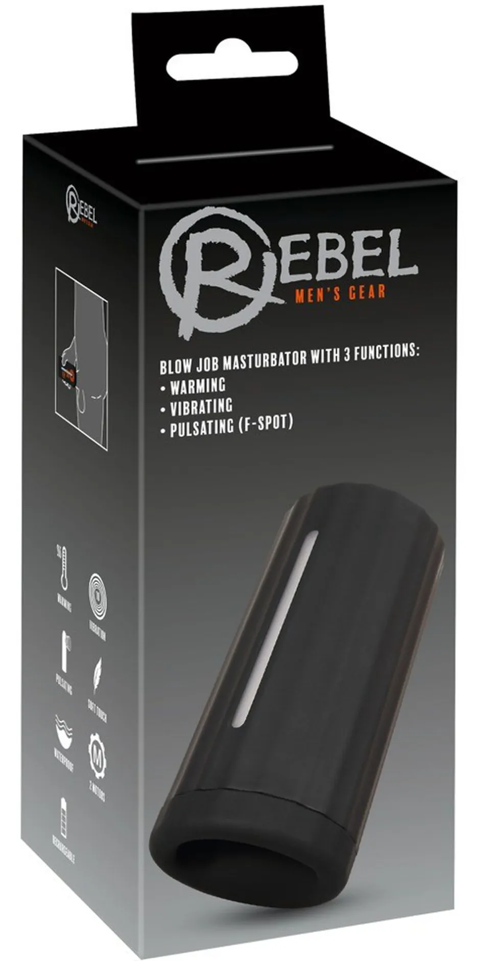 Blow Job Masturbator with 3 Functions fra Rebel til intense orgasmer – også med erektil dysfunktion. Indvendig med et spændende rillet soft sleve, som tallet være sin specielle form skaber realistiske sugefornemmelser ved penetration.