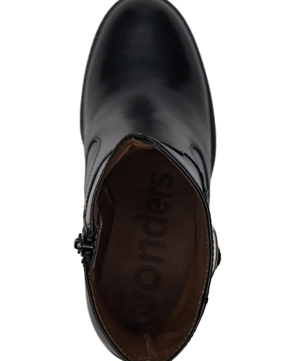 Støvle fra Wonders i en smuk læderkvalitet. Støvlen er enkel i modellen med lynlåslukning på indersiden, spændedetalje, en afrundet snude, en tyk hæl på 8cm samt flotte syningsdetaljer. En elegant støvle i den lækreste kvalitet.