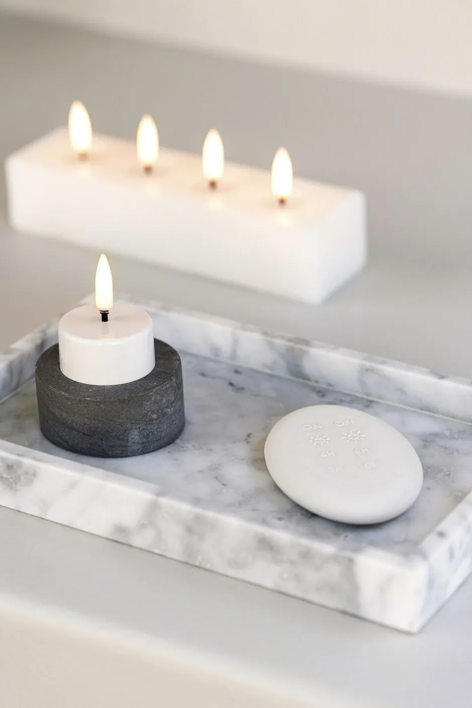 Fjernbetjening til Uyuni LED lysene med følgende funktioner: 3 slags timerfunktioner, tænd/sluk og justering af lystyrke. Et testbatteri incl. Lavet af Silikone og påført magnet.