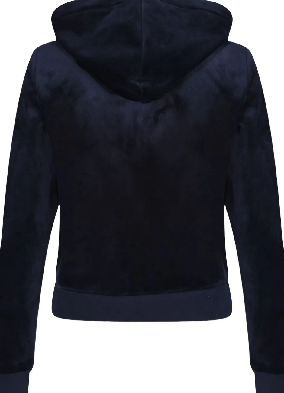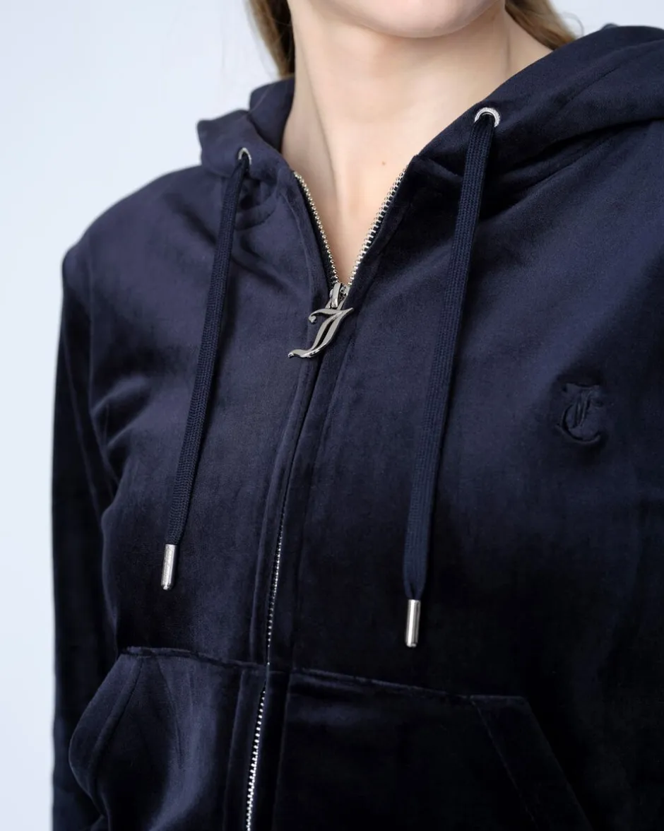 Hættetrøje med lynlås i klassisk velour med sølvfarvet hardware. Slank pasform med kængurulommer og foret hætte
