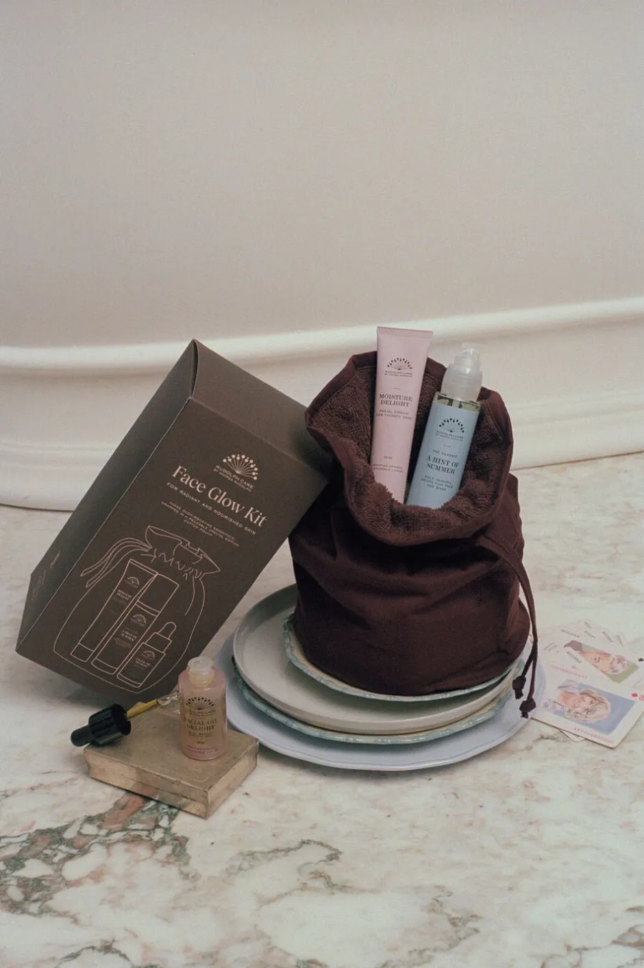 Face Glow Kit samler alt, hvad huden har brug for, for at føles fugtmættet, velnæret, og for at kunne stråle året rundt.