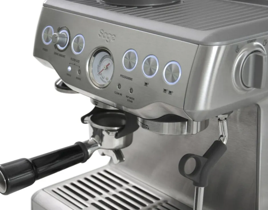 Kontrolpanelet på Sage Barista Express espressomaskine giver dig altid fuld kontrol over brygning af kaffen, hvad end du vil have et overblik over dens kaffekværn eller kaffestyrke, når du vil brygge en lækker espresso, kaffe eller cappuccino i den populære Sage espressomaskine.