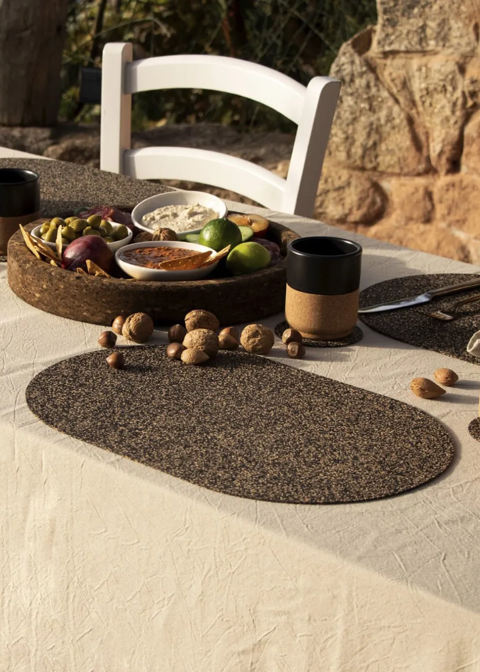 Bordbrikker fra serien Dash er en kombination af organisk kork og genanvendt gummi. Tanken er at forene stil med bæredygtighed. Sættet indeholder fire ovale bordbrikker, hver med dimensionerne 40×30 cm.