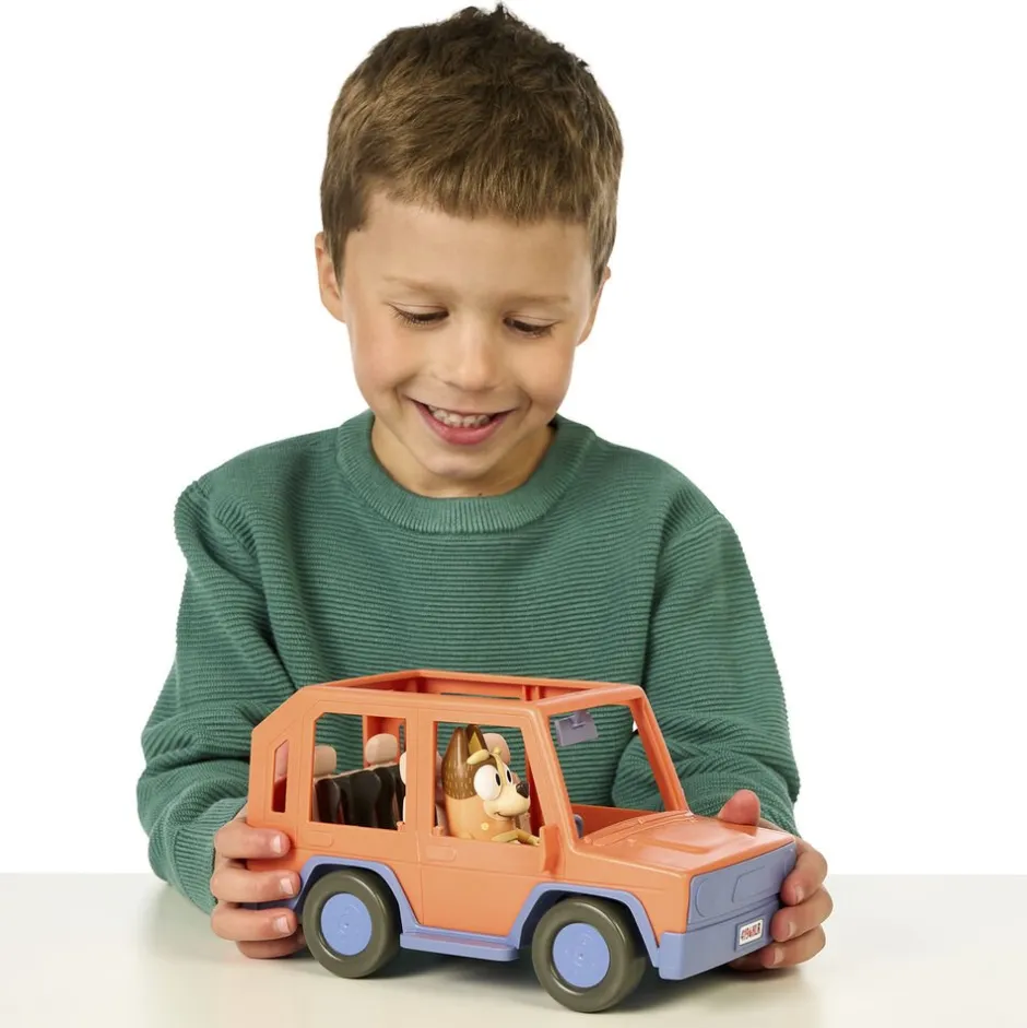 Tag hele Blueys familie med på tur i Heeler-familiens Road Trip 4WD-køretøj Det er den perfekte bil til sjove familieeventyr En Chili-figur er inkluderet, så hu n kan køre familien rundt Toppen af 4WDen er åben, så børn nemt kan placere op til fire figurer indeni, hvilket gør den til den perfekte match for Blueys Famili efigur-pakke (sælges separat) Børn vil elske at genskabe nogle af de mest mindeværdige øjeblikke fra showet med disse søde legetøj Funktioner Et helt nyt 4WD-fa miliekøretøj Inkluderer en Chili-figur, så hun kan køre familien rundt Toppen af køretøjet er åben og stor nok til at placere fire figurer indeni Den 6,3 cm Chi li-figur i denne pakke er posérbar og kan bevæge sig ved kroppen og armene Ingen batterier kræves 3 år Indhold 1 x KØRETØJ 1 x FIGUR