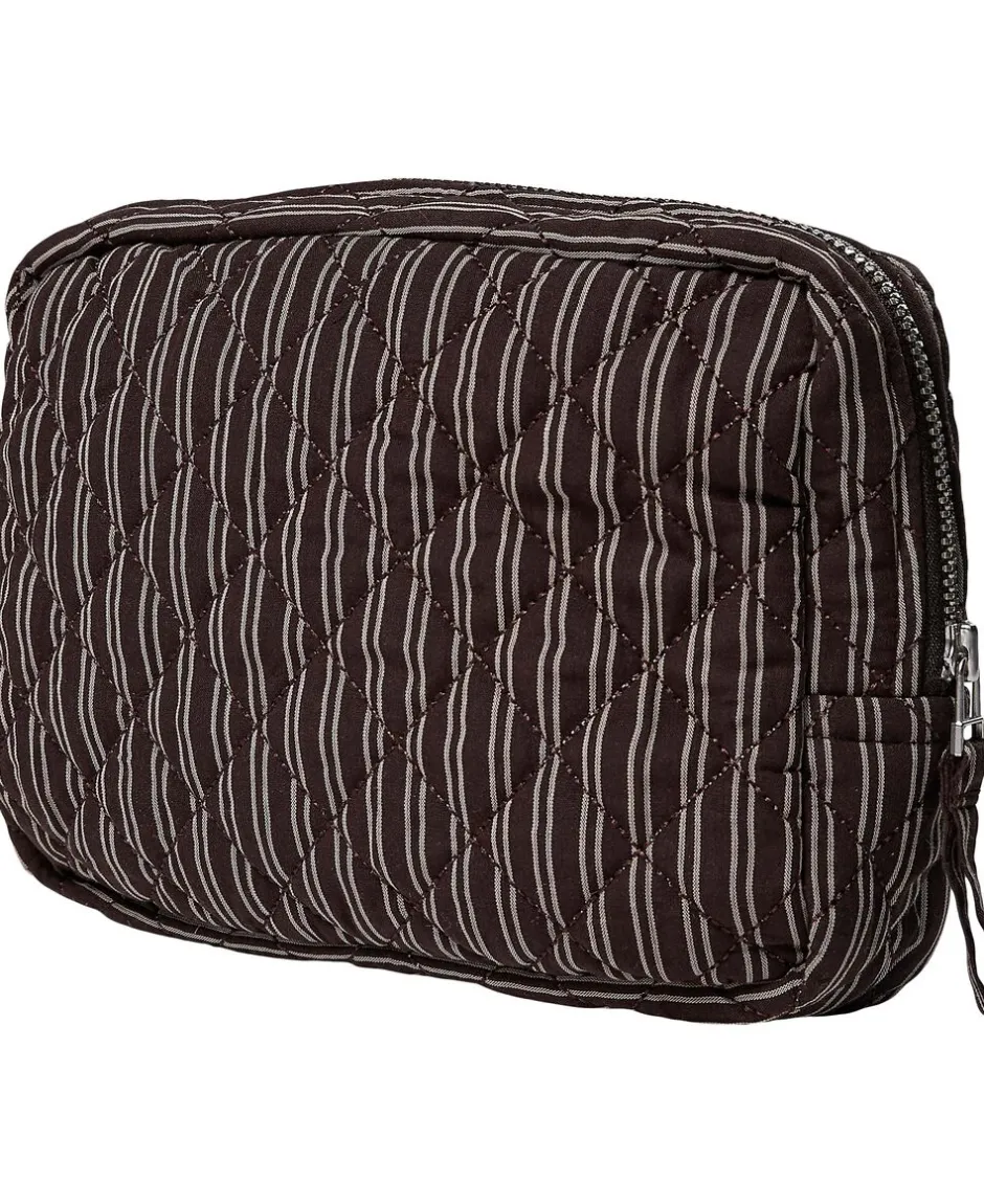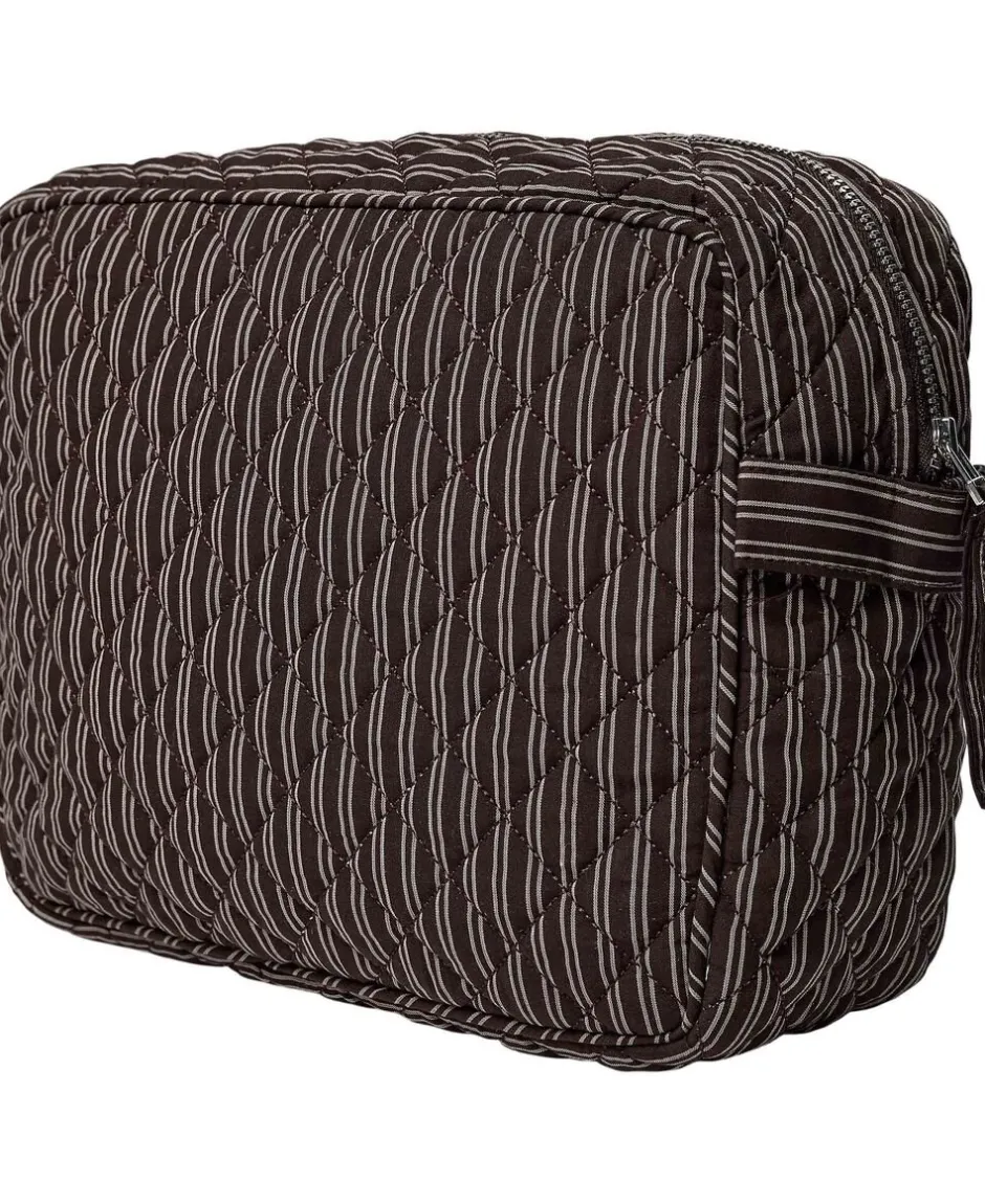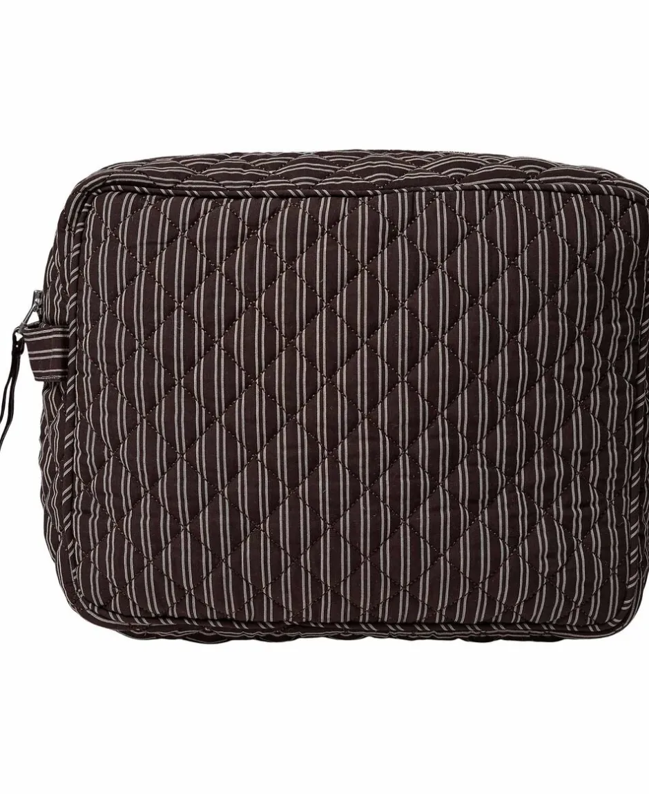Toilettaske fra Magasin du Nord Collection i den blødeste kvalitet af 80% økologisk bomuld med GOTS-certificering. Toilettasken består af ét stort rum med lynlåslukning samt mindre inderlommer. Derudover har toilettasken fine vatterede syningsdetaljer og et stribet print. En skøn toilettaske i den lækreste kvalitet.