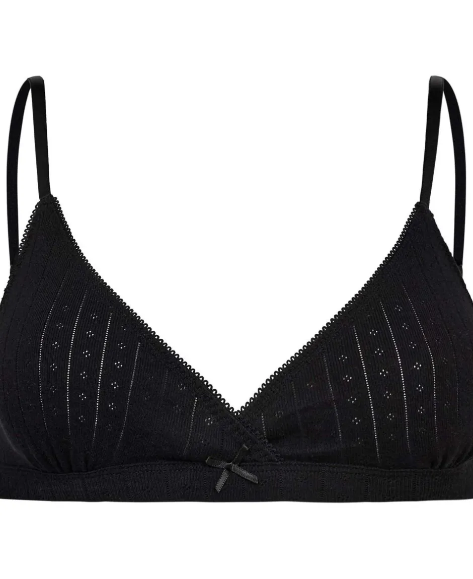 BH fra Magasin du Nord Collection i den blødeste kvalitet af 100% økologisk bomuld med GOTS-certificering. BH’en er enkel i modellen med det fineste hulmønster, smalle skulderstropper, trekantede skåle samt rib og blondekant. En skøn BH i den lækreste kvalitet.