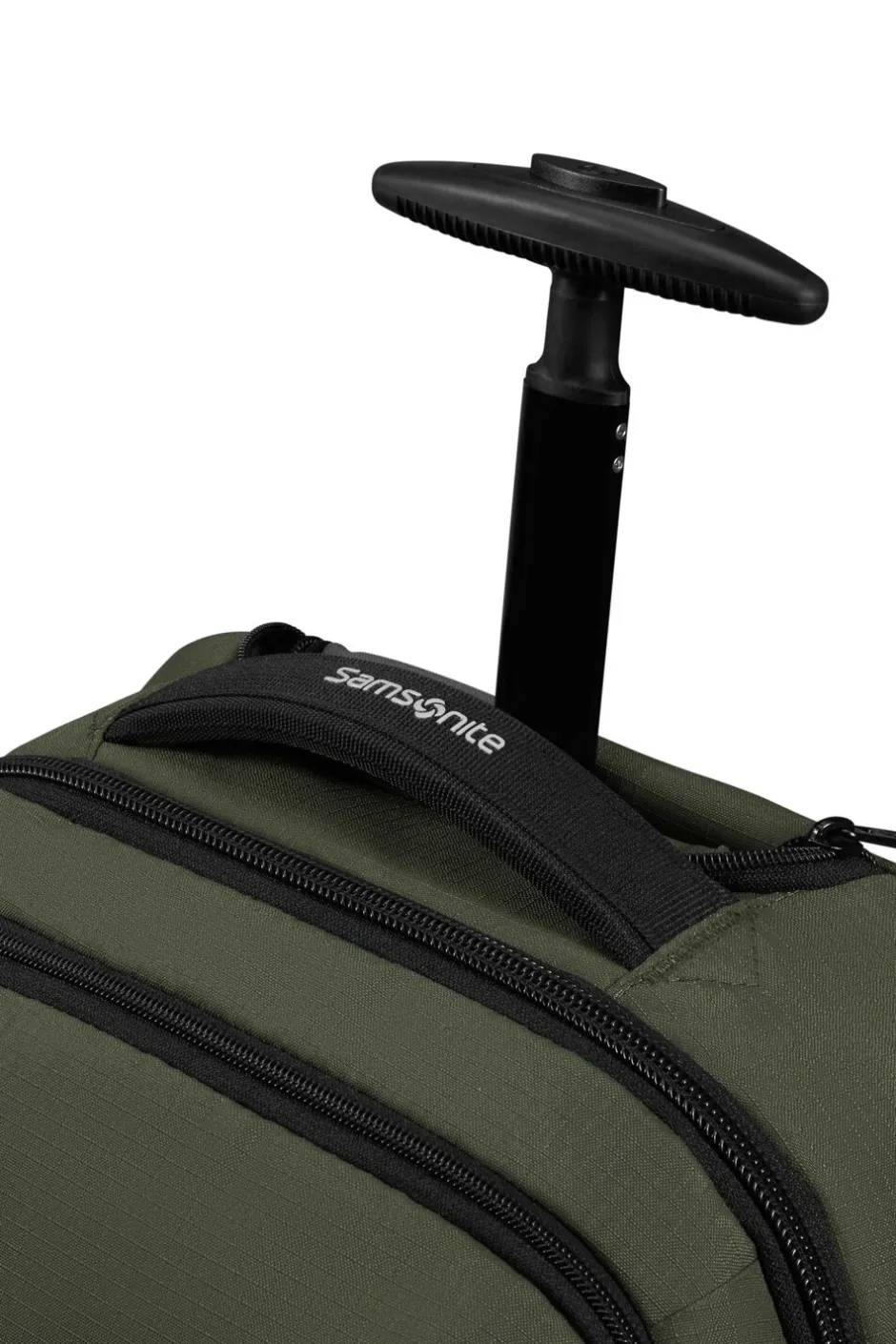 Computer rygsæk med hjul og plads til 17,3″ PC og 10,5″ tablet, både det indvendige og udvendige stof er lavet af genbrugsplast, frontlomme med lynlås, ergonomiske stropper, rumindhold 38 l, vægt 2,1 kg. 5 års garanti.