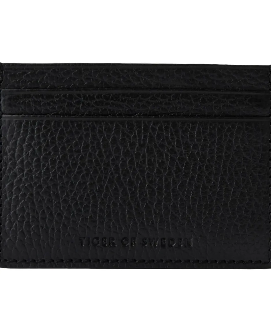 Card holder in soft grainy leather with smooth leather trimmings. Features one note pocket on top and four card slots. RFID anti-skimming lining. Embossed Tiger of Sweden logo at the front. Size: 7 x 10 cm