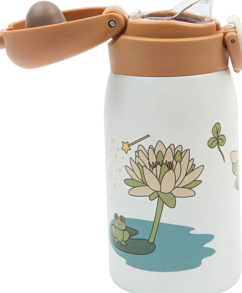 Fabelabs vandflaske er perfekt at tage med på farten eller i børnehave og skole. Vandflasken er nem for de små at bruge og drikke fra med den nemme, men sikre åbning, der forhindrer, at vandflasken åbner sig inde i skoletasken. Der er tilføjet en drikkesprøjte til sikker drikning, og den passer perfekt på siderne af vores nye Rygsæk – Stor. Vandflasken har en kapacitet på 320 ml og er lavet af rustfrit stål og BPA-fri PP-plastiklåg og silikoneforsegling. Vandflasken holder drikkevarer kolde i 24 timer og varme i 10 timer, og hverken modtager eller afgiver smag ved brug. Pleje og brug: Vask vandflasken i koldt eller varmt vand med en blød svamp eller børste for at rengøre indersiden. Hold vandflasken ren for at undgå lugt og opbevar vandflasken uden skruet låg for optimal tørring. Til grundig rengøring kan du fylde vandflasken med varmt vand indeholdende 10 % eddike i 30 minutter og rengøre med rent vand og en blød børste. Advarsel: Brug ikke den til kulsyreholdige drikkevarer, salte supper osv. Rens ikke vandflasken i opvaskemaskinen, da dette vil mindske den termiske effekt. Brug ikke slibemidler eller skuremidler. Fødevaresikker – EU-standard, LFGB – Fødevarekvalitetstest, DG CCRF – Fødevarekvalitetstest Ikke egnet til børn under 4 år