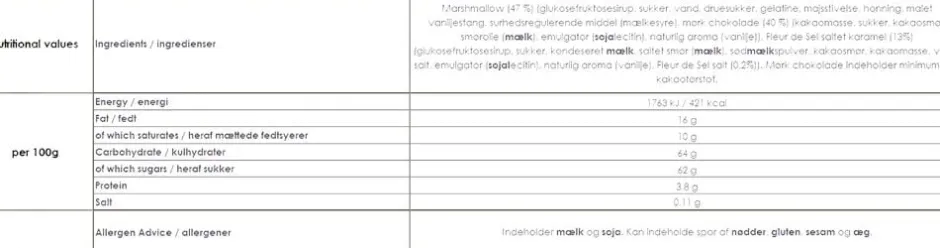 Sød og luftig skumfidus med vanilje og klistret saltkaramel overtrukket med tyk, mørk chokolade med det helt rigtige knæk. Enkeltindpakkede. 8 stk. i æsken.