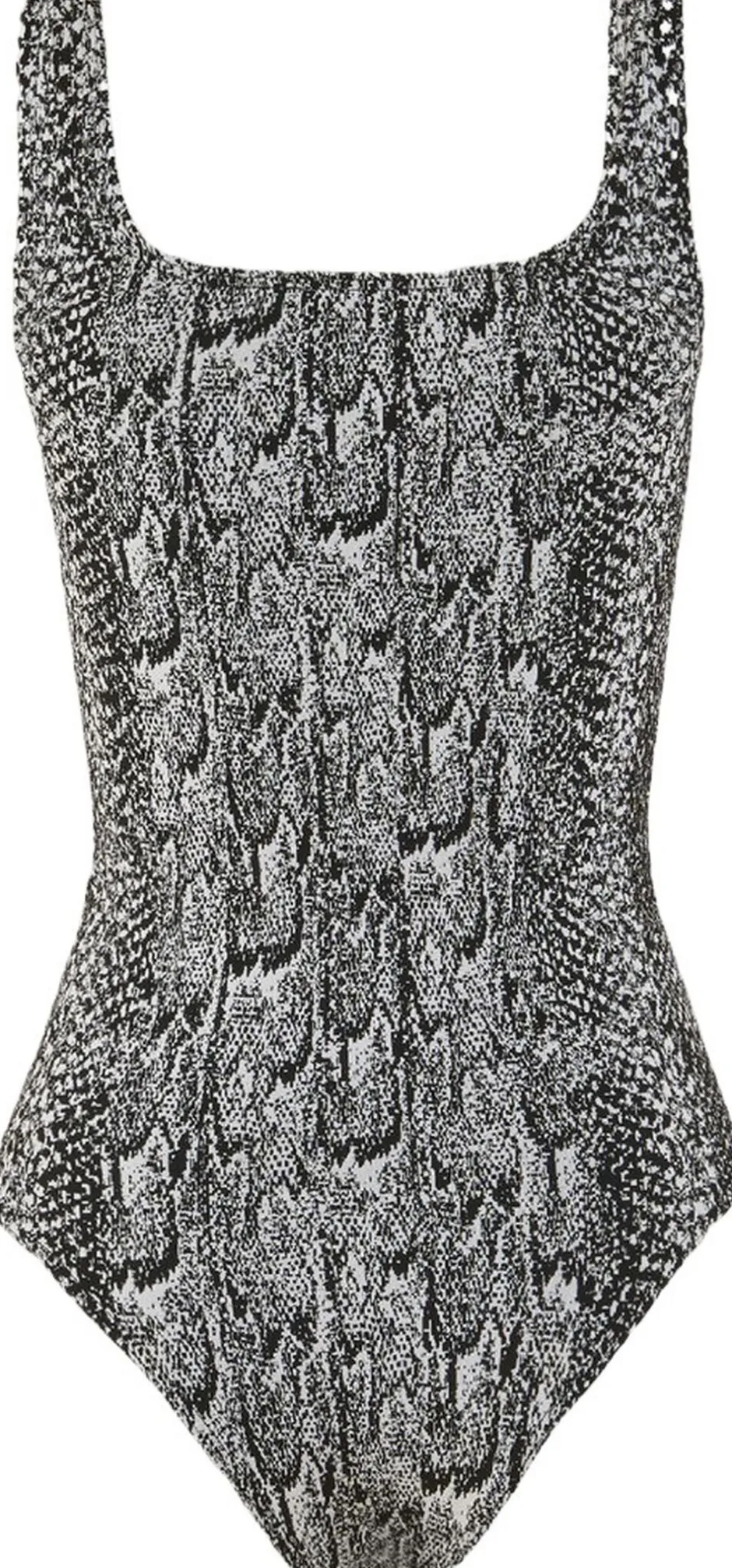 Denne bodysuit uden ærmer har et monokromt pythonmotiv, der ikke går glip afde matchende leggings fra kollektionen. Den balancerer kreativitet og innovation og er fremstillet af bæredygtigt farvet Emana-garn – en revolutionerende fiber, der absorberer varme fra Krop og returnerer den som infra