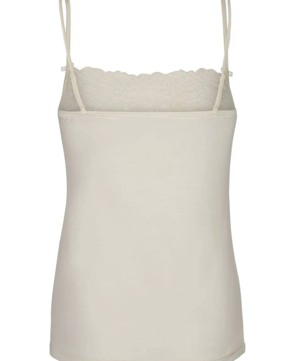 Top fra Calida i den fineste bløde kvalitet med blondestof over barmen. Toppen har smalle og justerbare skulderstropper med søde sløjfer på fronten, og derudover har den en tætsiddende pasform. Kombiner fx denne feminine top med et par matchende blondetrusser.